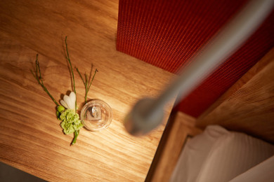 The soft and reassuring hues of nature immersed in a bright space, lively and vibrant materials that warm up the soul and induce to rest.